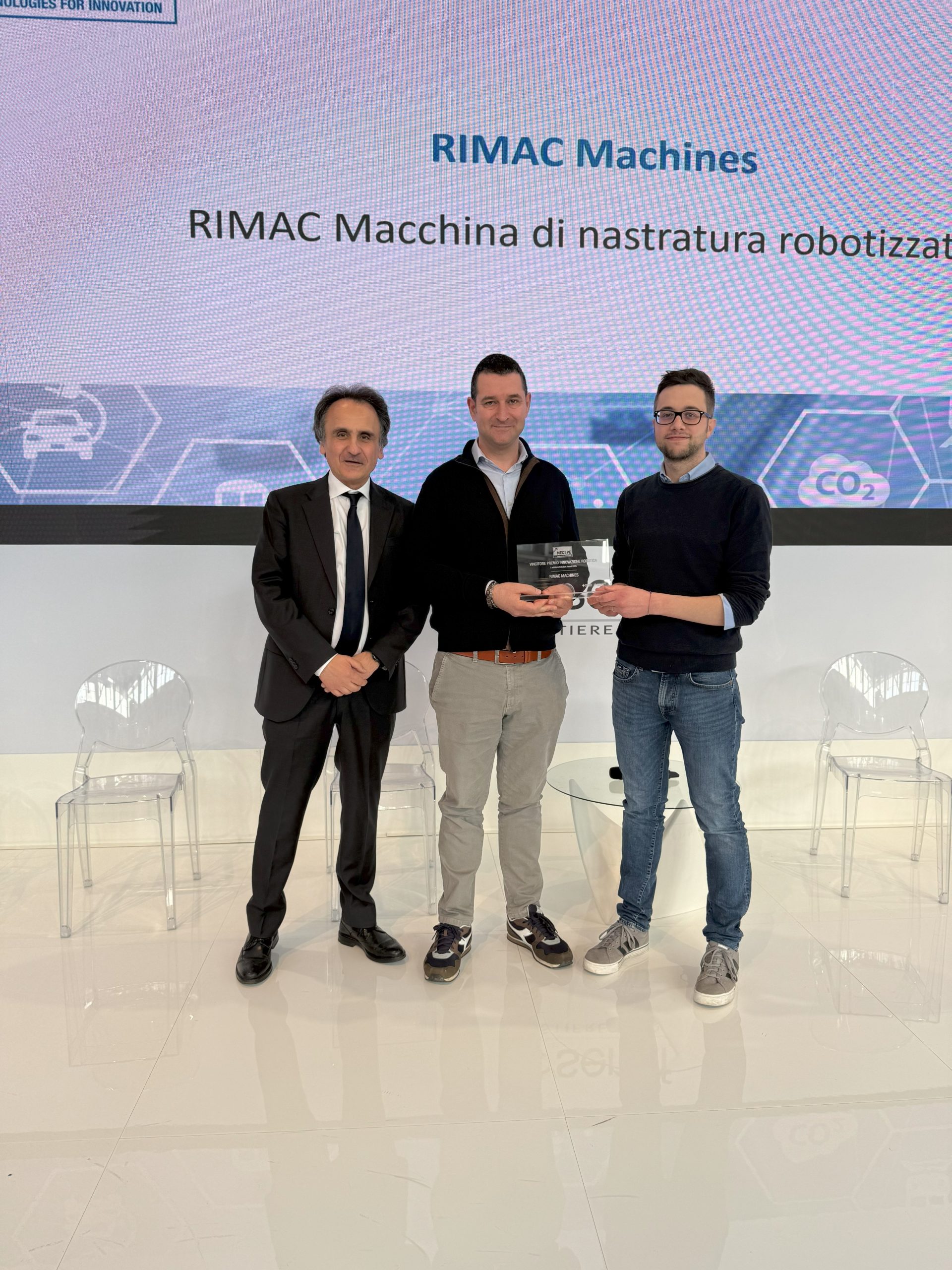 We are proud to announce that RIMAC has won the Solutions Award 2025 – Robotics Innovation Prize, organized by Automazione News Tecniche Nuove Spa in collaboration with Professor Paolo Rocco from Politecnico di Milano. The award was presented during MECSPE 2025, Leading Trade Fair for the Manufacturing Industry.
