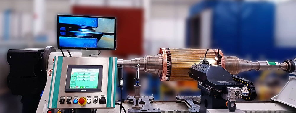 Machines designed to perform the automatic swaging of rotor bars, which involves locking them inside the rotor slot through mechanical deformation, using a pressing action.