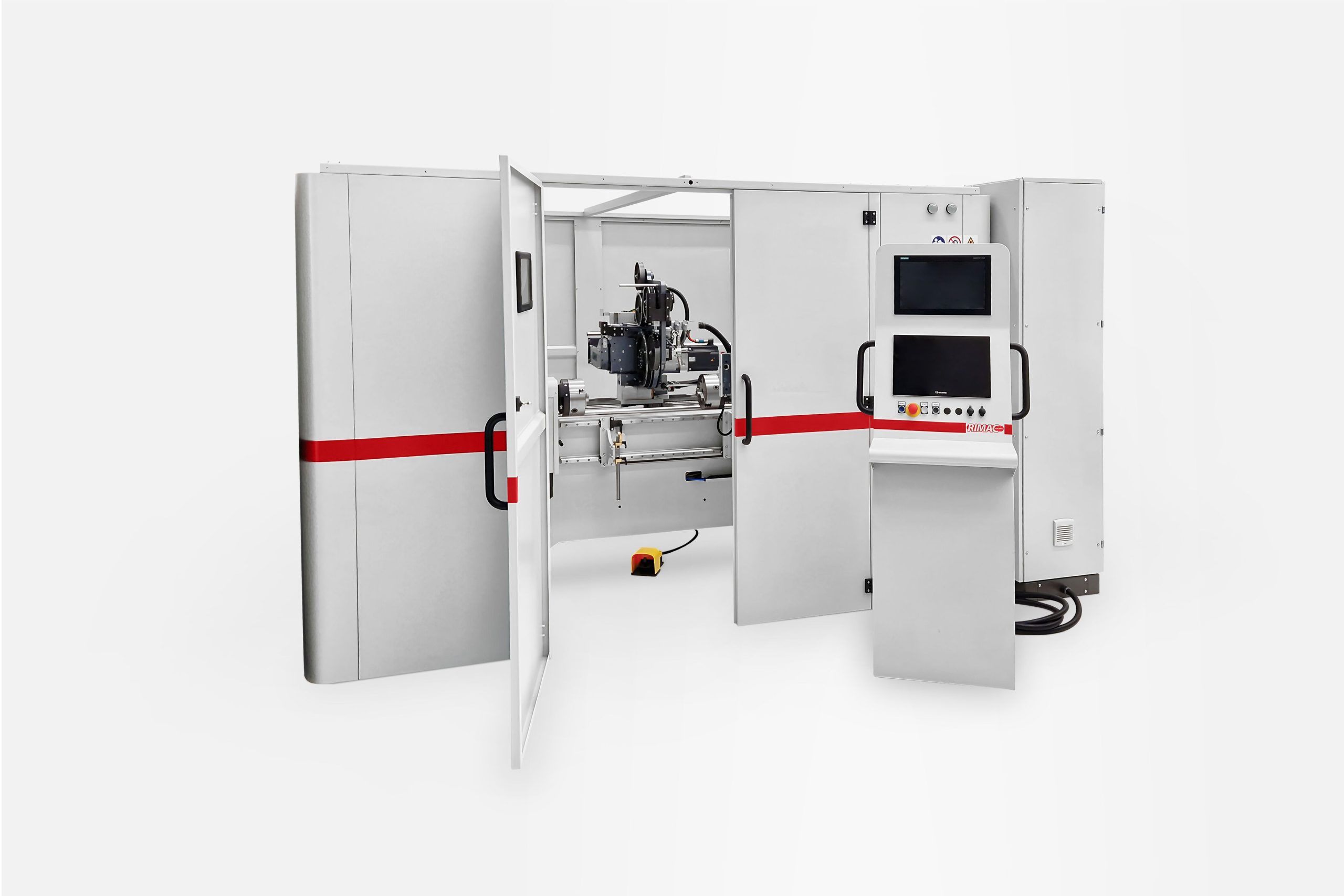 Máquinas automáticas para el zunchado de rotores de imanes permanentes. El zunchado es un proceso que agrega valor a las soluciones que implican la presencia de imanes en la superficie del rotor, así como a los rotores con imanes insertados en paquetes de láminas y que requieren un alto número de rotaciones por minuto. El zunchado del rotor representa una solución eficiente y flexible, con costos limitados, para contener los imanes y contrarrestar la fuerza centrífuga que actúa durante el funcionamiento del motor. Rimac es un referente en el mercado internacional en máquinas de zunchado de rotores de imanes permanentes.